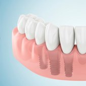 Substituem de forma fixa a raiz de dentes perdidos. São fabricados em titânio ou zircônia e servem de base para coroas, próteses ou pontes, devolvendo função mastigatória, estética e conforto.